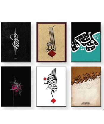 Set of 6 Islamic Calligraphy Wooden Frames – Modern HD Nail-Free Decor