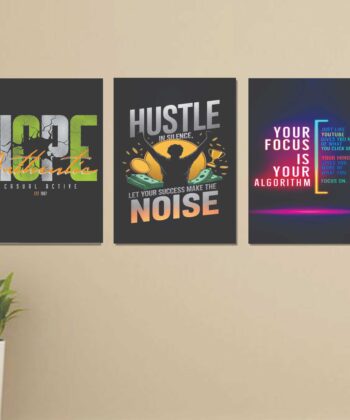 Set of 3 Premium Motivational Wooden Wall Frames: High-Definition Art Photo Tiles
