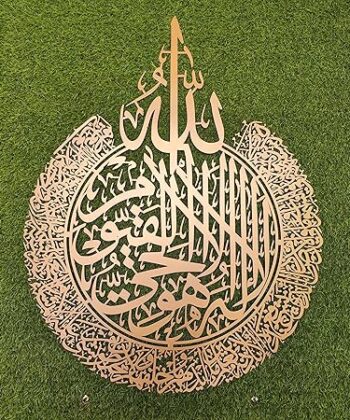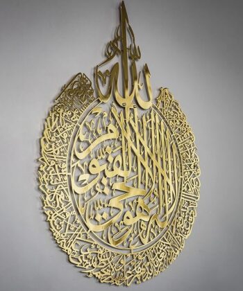 Buy NowShop 3D Ayatul Kursi Islamic Wall Art in luxury gold. Large wooden sticky tile for easy, no-drill installation. Perfect spiritual decor for living rooms & gifts.