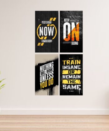 Set of 4 Premium Motivational Wooden Wall Frames: High-Definition Art Photo Tiles