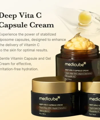 The Medicube Deep Vita C Capsule Cream is a 55g brightening and anti-aging moisturizer that uses encapsulated Vitamin C to target dark spots and uneven skin tone. This fast-absorbing formula provides essential hydration and firming benefits, making it an ideal daily treatment for a visibly radiant and glowing complexion.