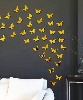 30-Piece 3D Golden Acrylic Butterfly Set – Mirror Finish Wall Decor
