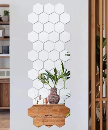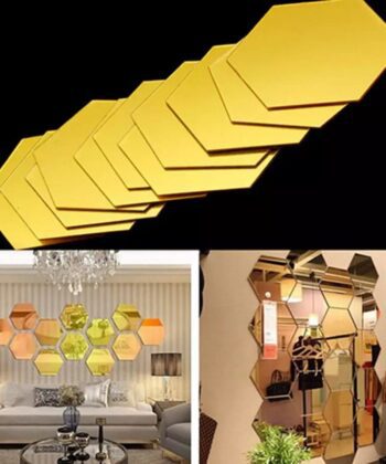 Buy NowPack of 12 – 3D Acrylic Hexagon Mirror Wall Stickers – Golden , Silver Geometric DIY Art Mural for Home Decor