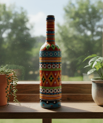 Buy NowHandcrafted Truck Art Glass Bottle Vase – 750ml Multicolor Traditional Pakistani Home Decor