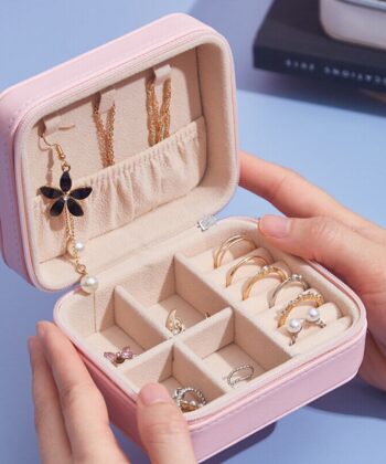 Buy NowElegant Portable Leather Jewelry Organizer – Compact Multipurpose Travel Case for Jewelry & Accessories