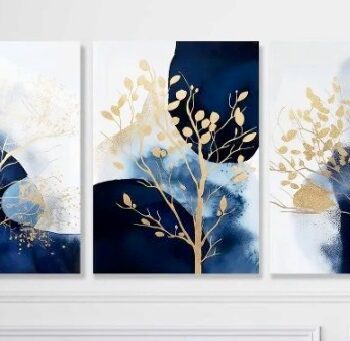 Buy NowModern Blue & Gold Abstract 3-Piece Wall Art – 8x11" Easy-Mount Wooden Frames