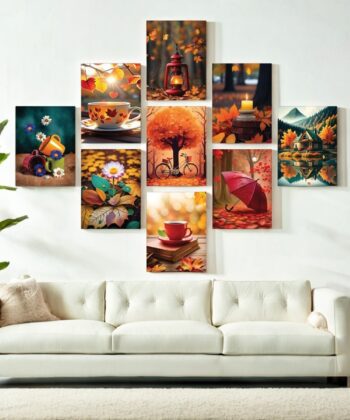 Set of 9 Premium Canvas Wall Art Frames: High-Definition Multi-Piece Photo Decor Modern Wooden Photo Tiles