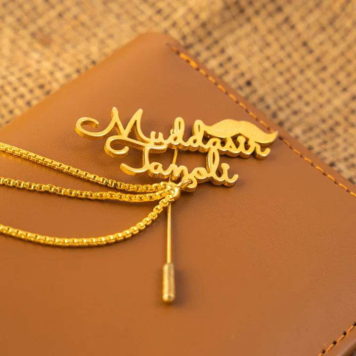 Elevate any suit or jacket with our finely handcrafted Mustache Lapel Pin, a truly unique men’s accessory. This Customized Name Coat Pin allows you to showcase your Signature Style with your name elegantly engraved. Perfect as a thoughtful anniversary gift or a memorable wedding bride to groom gift, this piece adds elegant wedding lapel pin sophistication. It is constructed from brass metal with gold or silver plating and designed with fine metal for long-lasting wear. Order your personalized pin today—it ships within the next 3-5 business days!