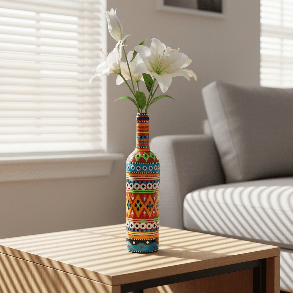 Authentic Handcrafted Truck Art Glass Bottle Vase – 750ml Vibrant Ethnic Home Decor