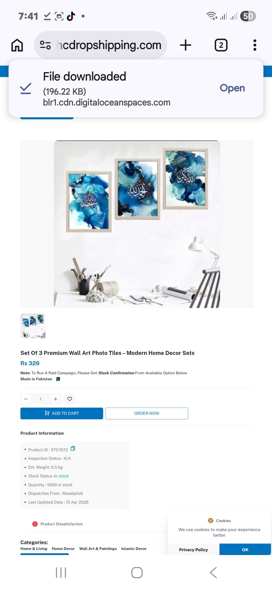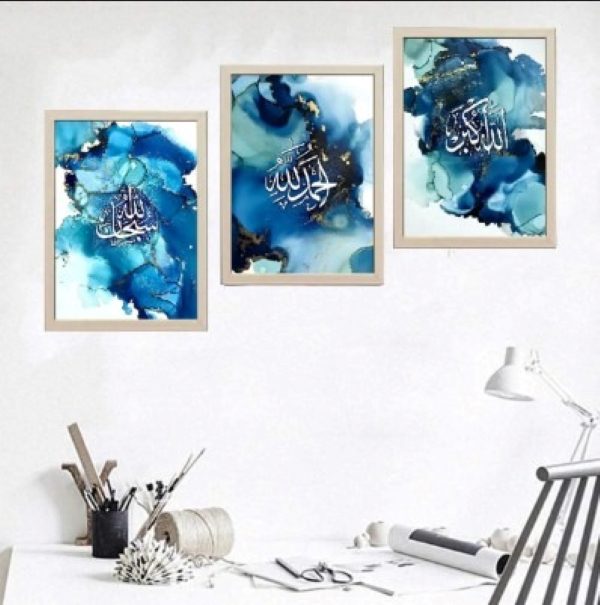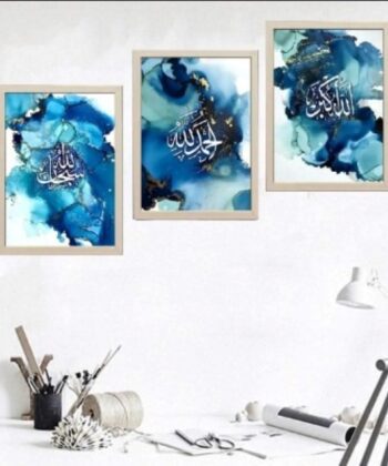 Be the first to review “3 Pcs Islamic Calligraphy Wall Art – Blue & Gold Marble Photo Tile”