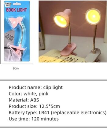 Portable Clip-On LED Book Light featuring a compact, lightweight design and a sturdy clip for hands-free reading anywhere.