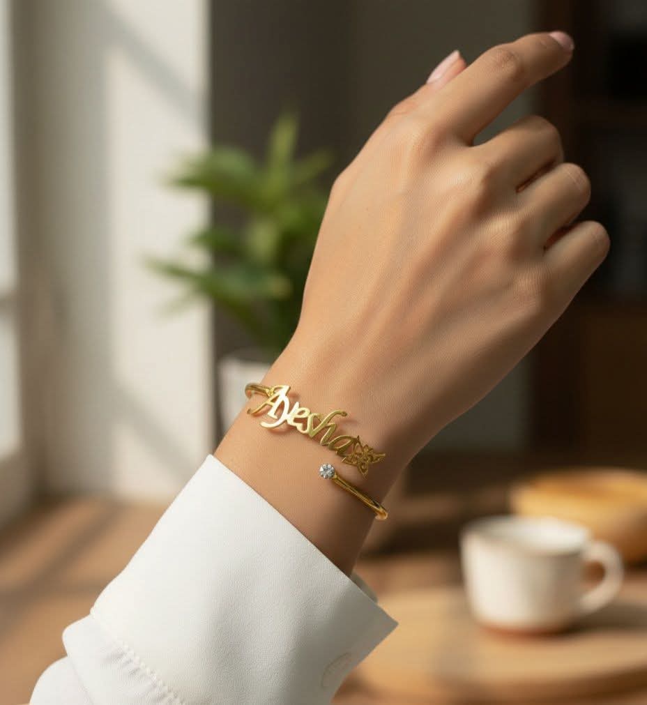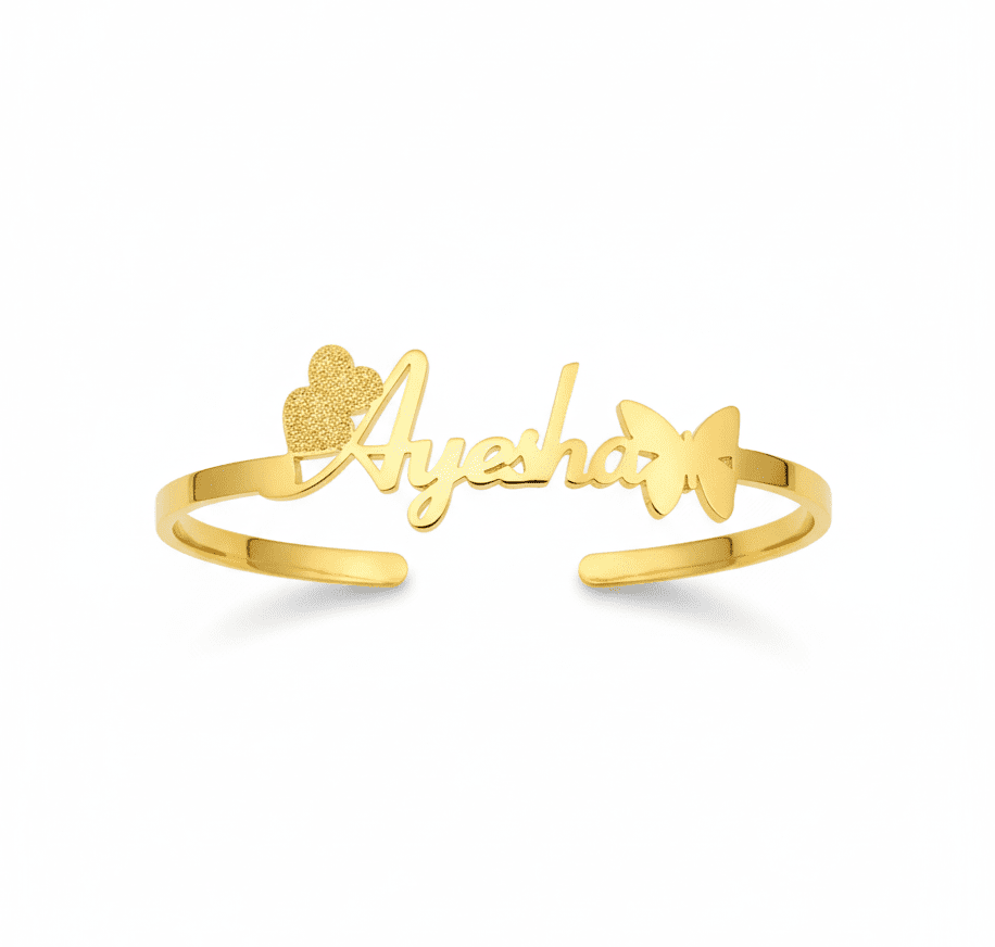 Get this Beautiful Bangle With your Name, a Premium accessory crafted from pure Brass Material with durable 24K Gold or Silver Plating, ensuring Quality & Durability that is hard to fade. This stunning piece is the Perfect Gift that lasts Forever, ideal for any party or ceremony, and available for delivery all over Pakistan!