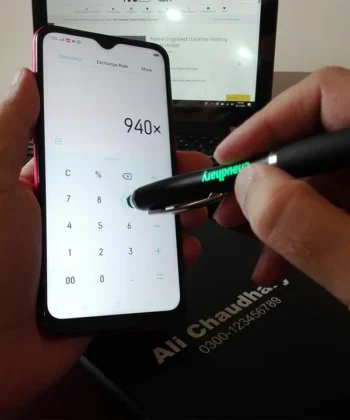 This fresh arrival is a premium, smooth-writing ball pen and stylus with a comfortable grip, featuring your permanently engraved name/designation backlit by a colored LED light, and it comes packaged in a beautiful black luxurious box.