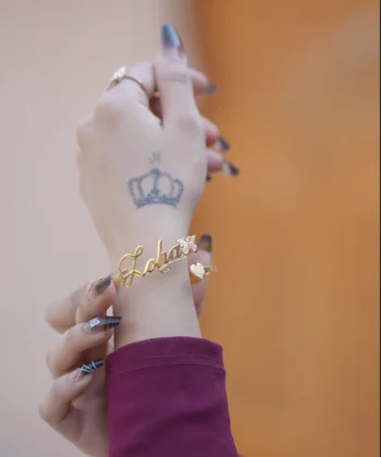 This elegant, non-corrosive adjustable Name Bracelet for Girls, made from brass alloy with a white crystal, is available in Gold, Black, or Silver, is personalized with an engraved name/date, and includes free delivery across Pakistan.