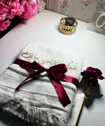 This elegant and traditional men's shawl, made from soft acrylic stuff and available in Black or White, features custom hand-painted English or Calligraphy names, making it ideal for cultural occasions like Eid or Nikah gifting.